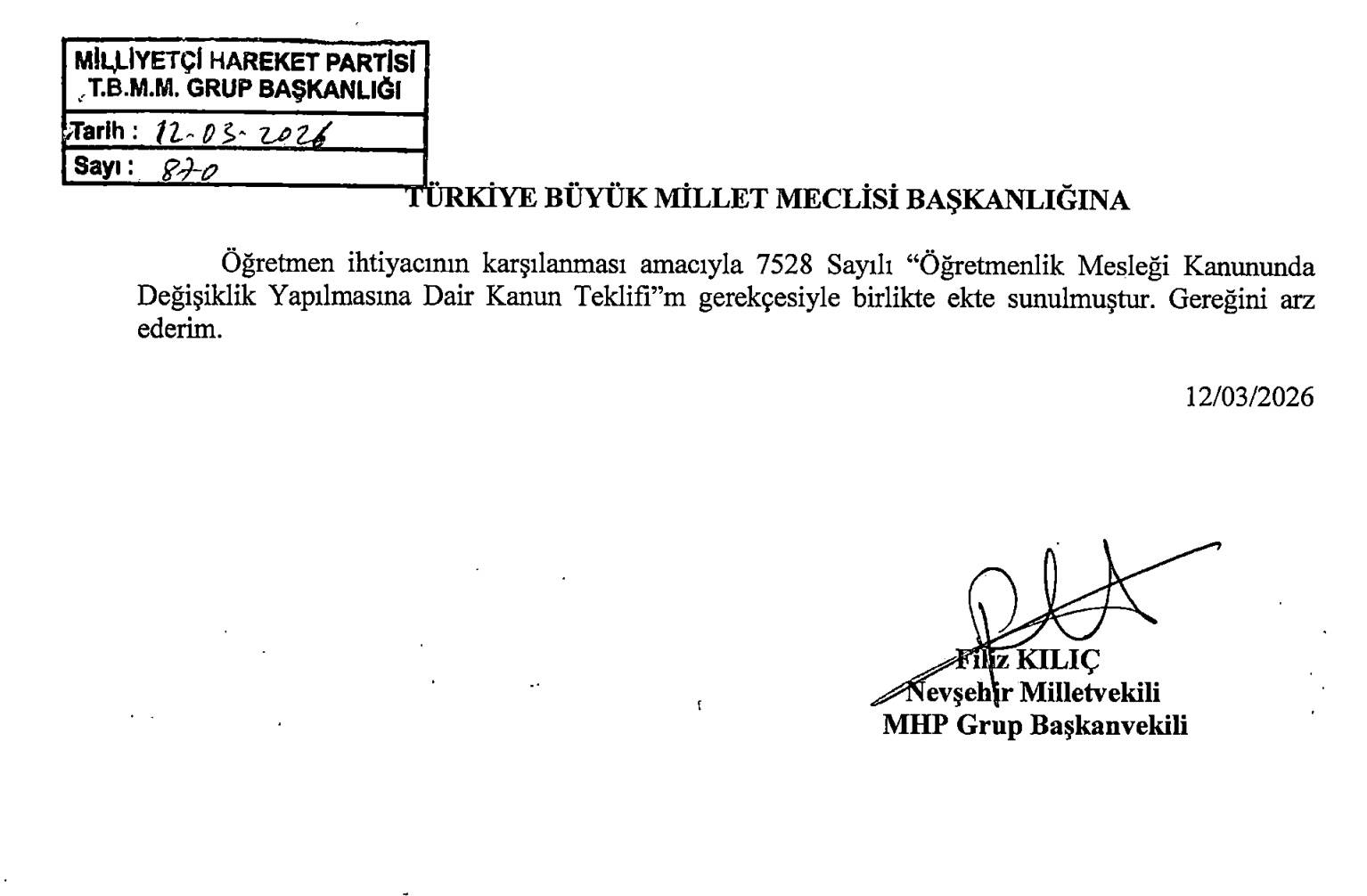 MHP Grup Başkan Vekili Filiz Kılıç ,1611 mülakat mağduru öğretmenin atanmasına yönelik bir kanun teklifi önergesi verdi. Önerge konusu X’te trend oldu!